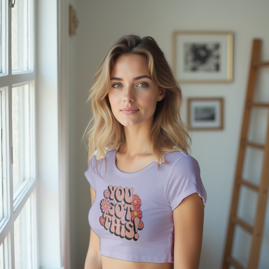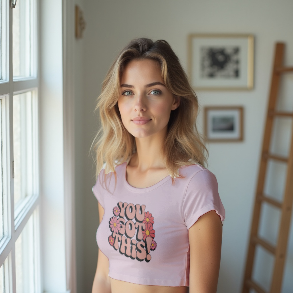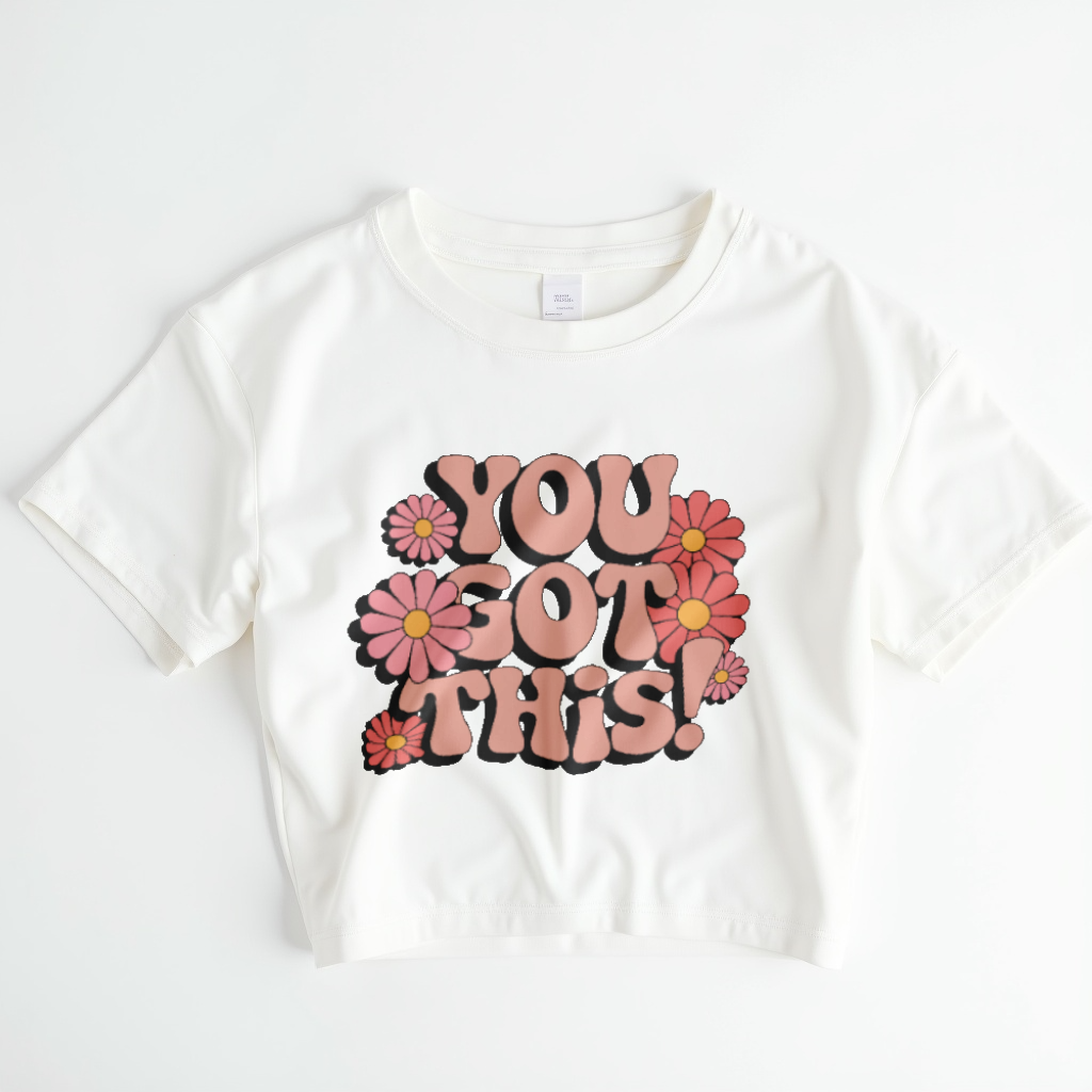 Bring good vibes wherever you go with our You Got This! crop top. This design combines retro bubble lettering with cheerful daisies in warm pinks and reds—like a personal pep talk you can wear. Crafted with 100% super combed cotton (180 GSM), this tee feels as soft as it looks powerful.